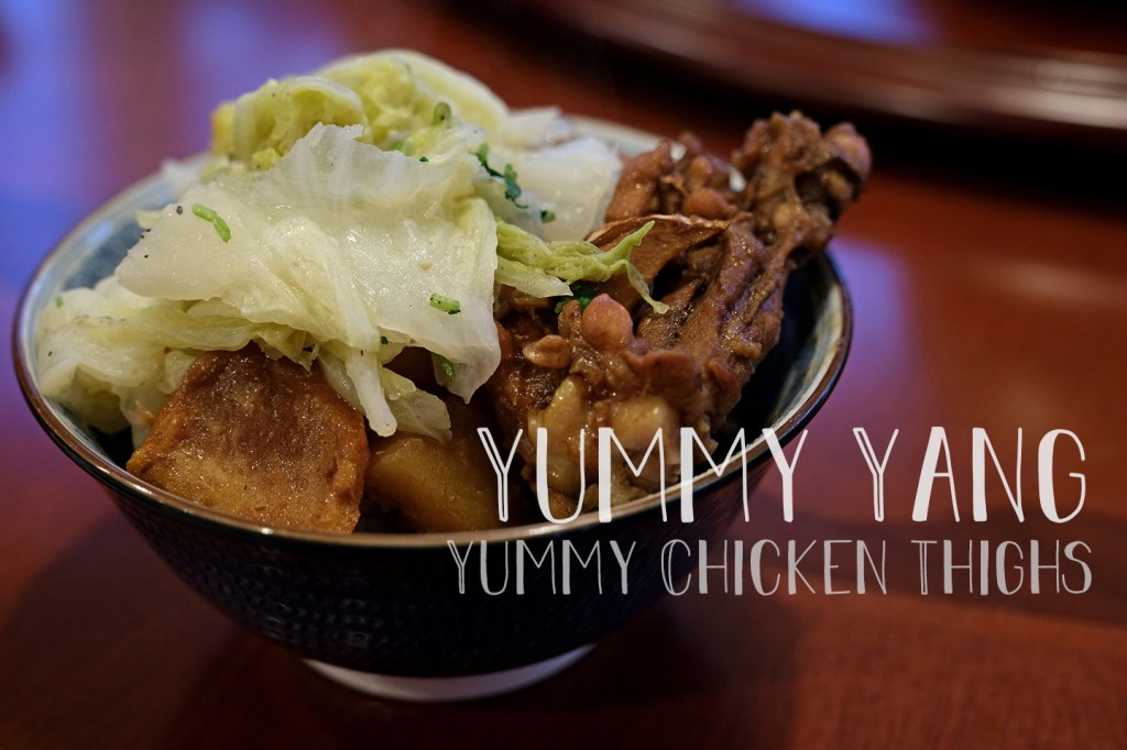 Marinate quartered chicken thighs with soy sauce, salt and pepper for 10 minutes.