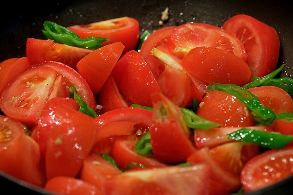 Add fresh tomatoes and mix vegetables together. Gently stir vegetables frequently to ensure even cooking.