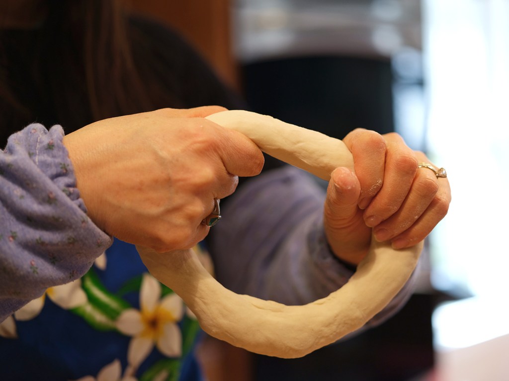 Break the doughnut into a long snake, and roll with your hands until smooth.
