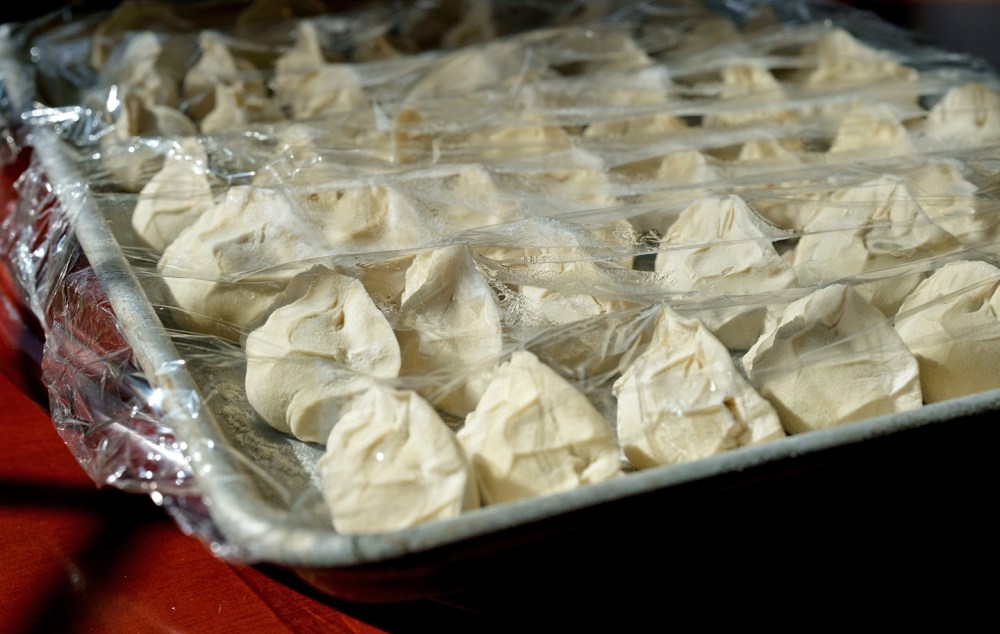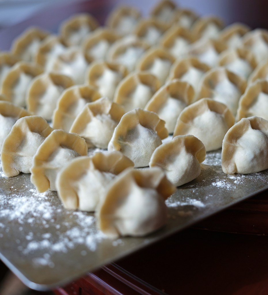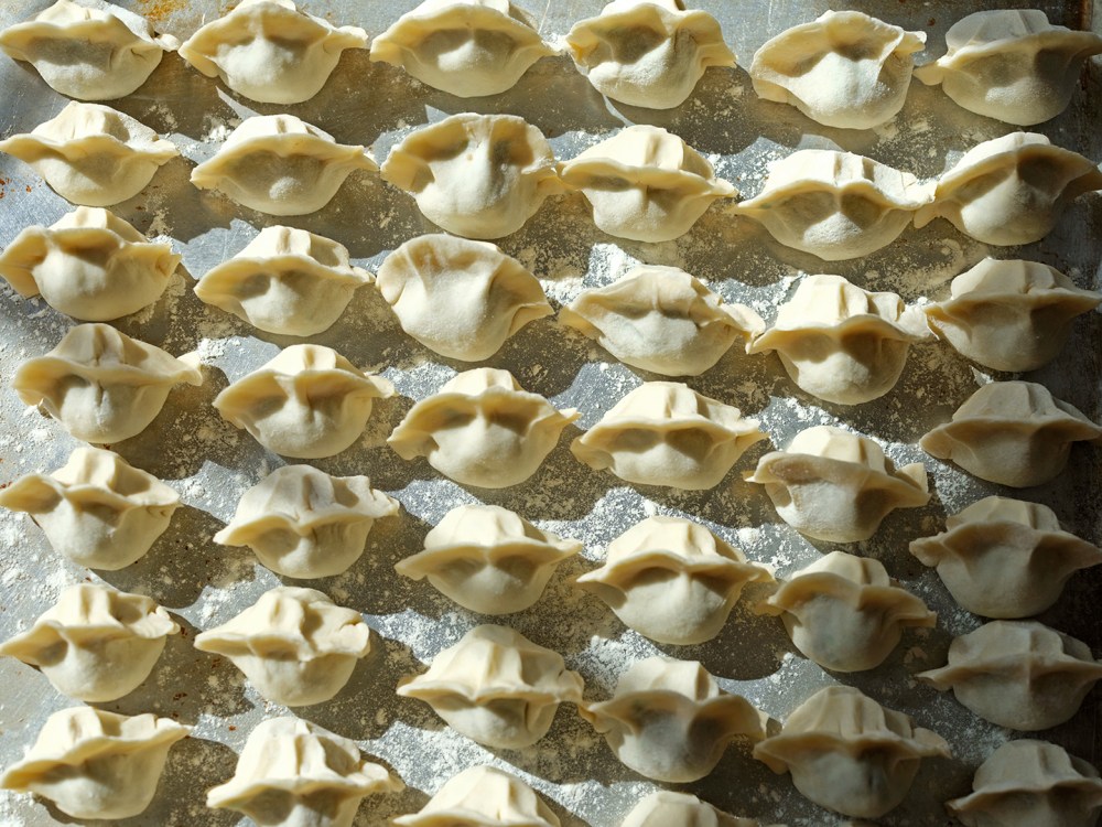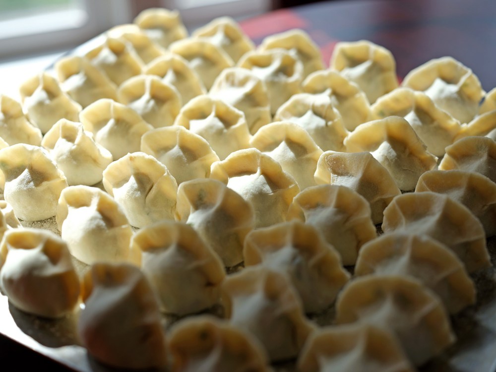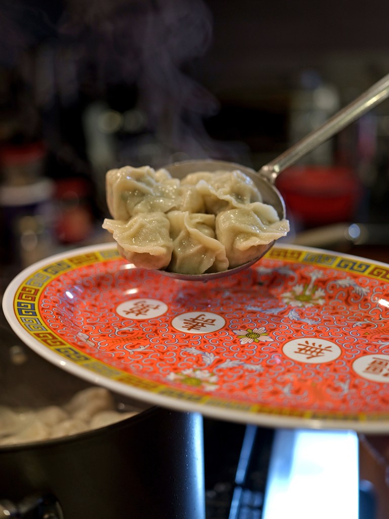 Quickly remove dumplings with a strainer and serve hot alongside dipping sauce. We suggest you enjoy these perfectly-sized dumplings right away, so either wrap, eat, and return to wrapping, or wrap all dumplings at once but only cook what you’ll eat that day.